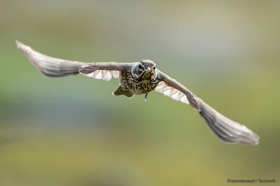 Reissun lopussa ajelimme saman järven rannalle missä olimme kuulleet riekkojen narinaa matkan alussa. Majoitus oli niin hyvässä paikassa, että ajomatkat olivat lyhyitä. Saavuttuamme paikalle huomasimme linnun vähän kauempana lennossa, tehden samaa silmukkaa koko ajan. Menimme lähemmäksi ja huomasimme sen olevan punakylkirastas, joka oli löytänyt hyvän saalistuspaikan. Tämähän sopi meille paremmin kuin hyvin, ei tarvinnut kuin istahtaa alas ja odottaa, että lintu lentää kohti. Tätä tapahtui monta kertaa peräkkäin. Keli oli keskipäiväksi aika passeli, aurinko paistoi pilvien välistä antaen vähän valoa mutta ei liikaa. Punakylkirastaiden ääntä kuulee pohjois-Norjassa paljon, joten senkin takia oli kiva, että yksi löytyi näin hyvin kuvattavaksi. Toinen tuttu ääni siellä on järripeippo, jonka ryystämistä kuulee joka puolella. Sen näkeminen tuntuu kuitenkin olevan kiven takana.