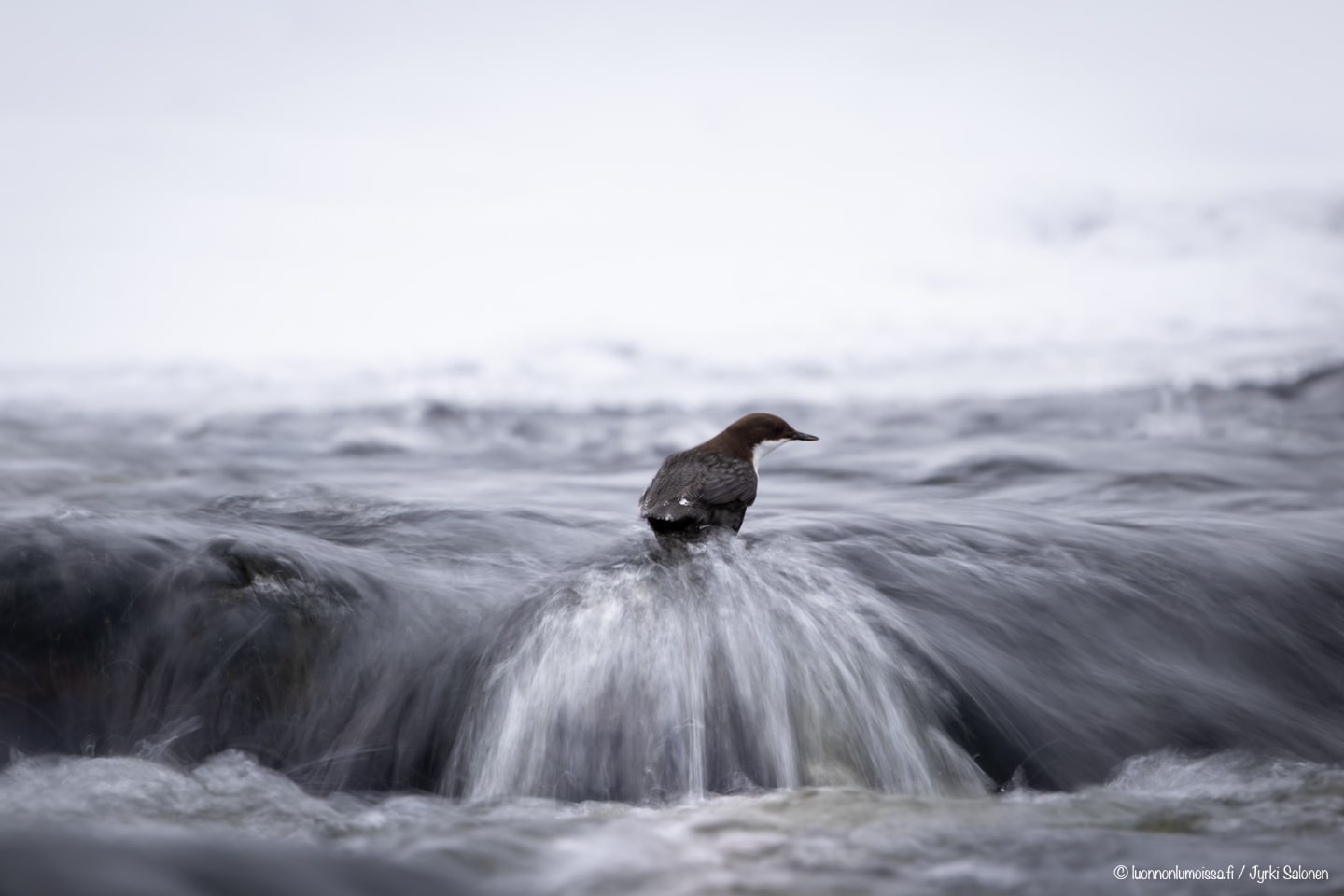 Mutta kuitenkin, nyt oltiin taas muutaman viikon hiljaiselon jälkeen luontokuvauksen kovimmassa ytimessä: istumassa pakkasen pureman kosken varressa, ottamassa tuhansittain kuvia, joista kotona poistetaan kaikki paitsi viisi onnistuneinta, postataan niistä jäljelle jääneistä yksi Instagramiin ja sitten kirjoitetaan blogi-postaus, jossa valitetaan, ettei kukaan tykännyt siitä yhdestäkään.