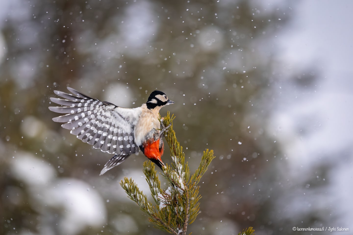 Hieman ivallisesti kuukkelien ja lapintiaisten keskellä kuvaillessa parhaat otokset taisivat syntyä paikalla touhunneista ainakin kolmesta käpytikasta. Illat olivat pilvisiä, eivätkä revontulet häirinneet saunan lämmittelyä.